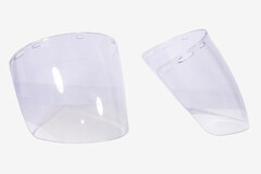 Descrição do Equipamento: Protetor facial constituído de coroa confeccionada em PEAD nas cores verde, amarelo, azul, cinza, laranja e vermelho com cinco pinos para encaixe do visor confeccionado em policarbonato incolor, carneira confeccionada em PEBD cinza presa à coroa através de dois parafusos plásticos com regulagem de tamanho na parte superior da cabeça através de ajuste simples e na parte traseira da cabeça nas opções através de ajuste simples e de catraca.